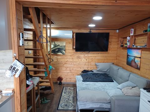 A 2022-ben épült, könnyűszerkezetes ház két szinten összesen 50 négyzetméter lakóterülettel rendelkezik.