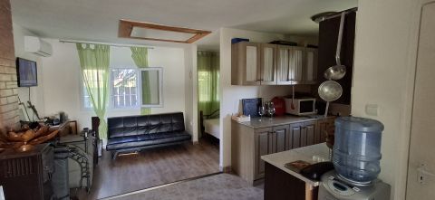 Kiadó egy kényelmes, 31nm-es, klímás házikó , egy 19 nm-es fedett terasszal, ami közvetlenül a vízparton helyezkedik el, saját stéggel. A házban minden megtalálható, ami a nyugodt pihenéshez szükséges és lélegzetelállító kilátás nyílik a tóra.