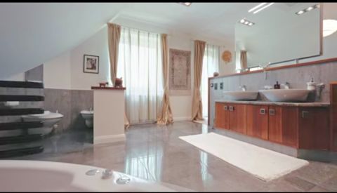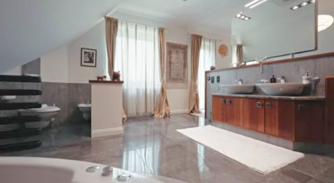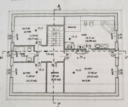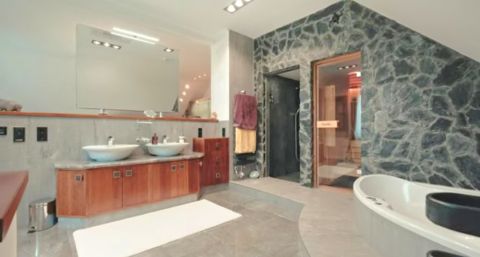 - emelet: 3 szoba, 2 fürdőszoba (2 személyes pezsgőfürdő), finn és infraszauna, gardrób, közlekedő.