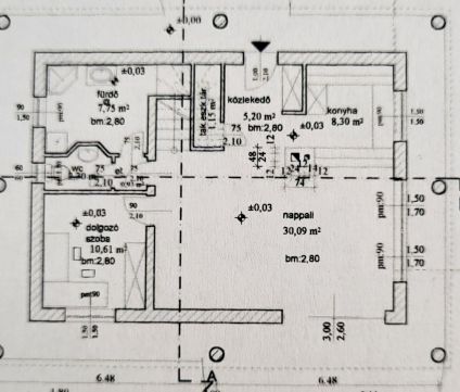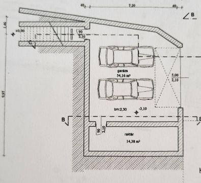 - alagsor (68 m2): garázs 2 autó részére, tároló