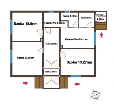 Lakótér 90 nm ( 3 szoba, konyha-étkező, fürdő+wc, kamra )