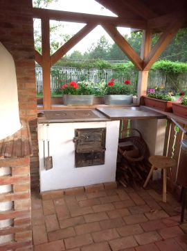 - földszinten: amerikai konyhás nappali, kamra, előtér, WC, nyitott teraszon: búboskemence, és sparhet