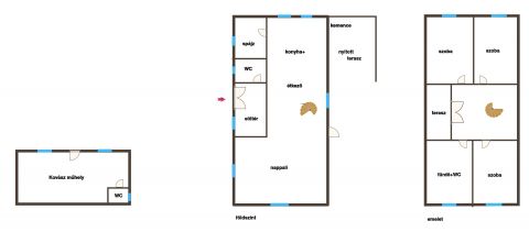 - emeleten: 3 szoba, füdő+WC, lépcsőtér, és terasz