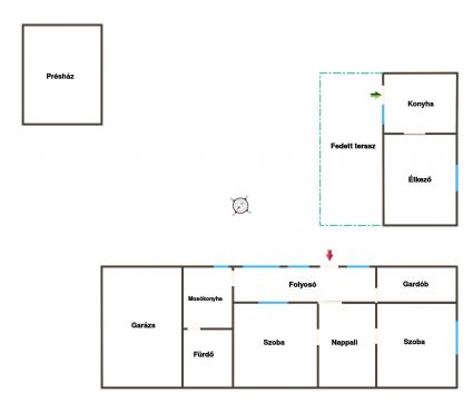 Különlegessége, hogy a konyha-étkező egy külön épületben található, ami praktikus és hangulatos megoldást kínál.