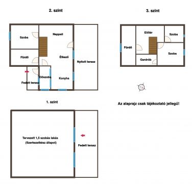 Középső és felső szint (összesen 92 m²):