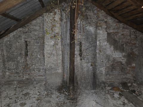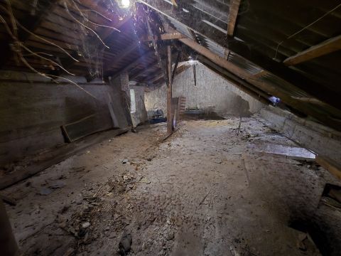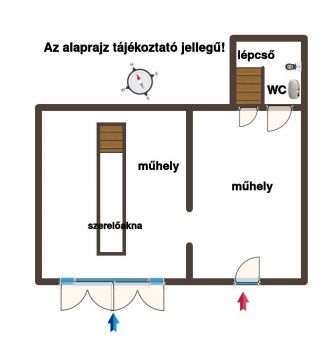 2 műhelynek használt helyiség mellett egy beton lépcsős padlásfeljáróból, ami lépcsőházzá alakítható.