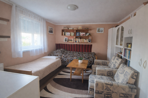 Kert és udvar: A telek bőséges helyet kínál a kikapcsolódáshoz, a kertben termő gyümölcsfák találhatók. Az udvaron egy 20 m²-es mobil garázs biztosítja az autó védelmét vagy plusz taroló helyet.