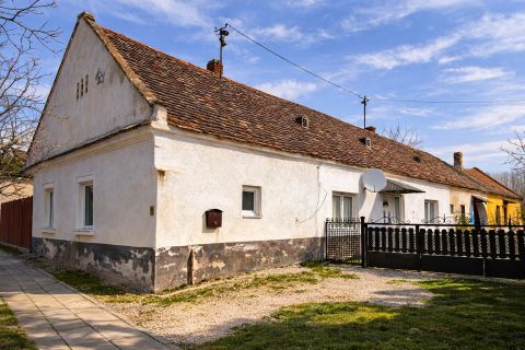 A ház autentikus, 192030-as években épült, hagyományos parasztház jellegű épület, nyeregtetős kialakítással, részben alápincézve. Kő alapozás, vegyes falazat és tornácos karakter adja meg a vidéki hangulatot. A 24 nm-es, kb. 2,3 m belmagasságú boltíves pince kiválóan alkalmas tárolásra. A pince és a padlásfeljáró praktikusan az udvarról nyílik.