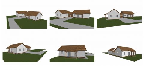 Az ikerház garázsnál kapcsolódik, így a lakóterek jól elkülönülnek egymástól. A két lakás telekrésze kerítéssel leválasztásra kerül, a garázsok között 100 cm magas elválasztó kerítés készül.