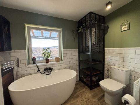 A ház konyha-étkezős, fürdőszobájában kád és zuhanyzó is található.