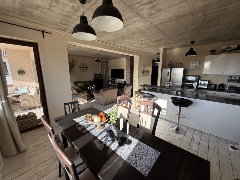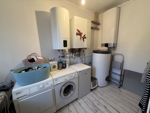 A házban vizes, hőszivattyús rendszer szolgáltatja a kellemes hőmérsékletet mennyezet és padló hűtés-fűtéssel. A villanyszámla mindössze 30.000 ft. Prémium minőségű emelő-toló teraszajtó, illetve 3 rétegű nyílászárók is gazdagítják az ingatlant. A magas műszaki tartalomnak köszönhetően passzív ház közeli az energetikai besorolása. A padló alatt 10 cm-es polistirol szigetelés található. A tulajdonos saját családjának építette az épületet, nem eladási célra.