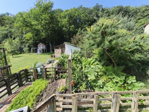A parkosított, termő gyümölcsfákkal rendelkező udvaron megtalálható egy masszív, fából épített dupla autóbeálló, ásott kút, konyhakert, valamint a gyermekek kikapcsolódását biztosító fa játszóház.