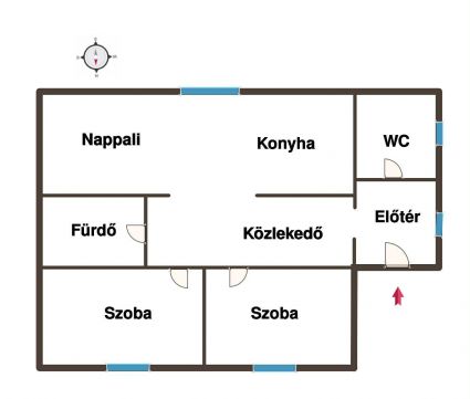 Átgondolt, élhető elrendezés: tágas amerikai konyhanappali 2 külön nyíló hálószoba fürdőszoba külön WC