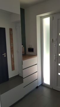 A minőségi műanyag, 3 rétegű nyílászárók az alsó szinten elektromos aluredőnnyel szereltek. A burkolatok gondosan válogatott, magas kopásállóságú, modern megjelenésű anyagok.