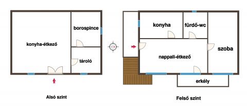 --alúl egy konyha-étkezőt, tárolót és borospincét találunk