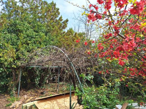 A nyitott 15m2-es teraszról kilátás nyílik a szépen gondozott kertre. A bekerített telek 472m2. A mellette levő telekkel bővíthető.