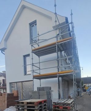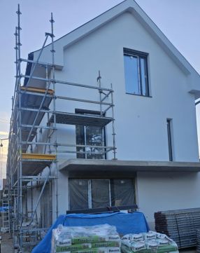 homlokzati falon 15 cm vtg. EPS hőszigetelő vakolat rendszer antracit, illetve törtfehér színben