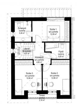 A felső szinten további 3 db teljes értékű szoba várja új tulajdonosait, a lakók kényelmét még két db fürdőszoba szolgálja.