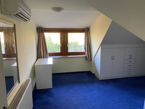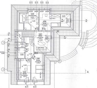 az alsó szinten két hálószoba, toalett és háztartási helyiség,