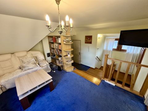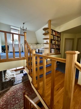 a felső szinten hálószoba, fürdőszoba és egy hangulatos közösségi tér várja új tulajdonosait.