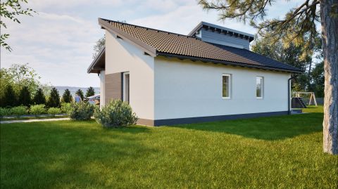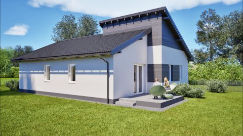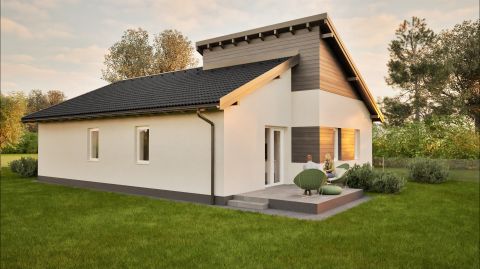 A ház félnyeregtetős kialakítása nem csupán esztétikus, de funkcionálisan is kiemelkedő, biztosítja az optimális csapadékelvezetést. Az antracit színű Bramac Római protector beton cserepek modern megjelenést kölcsönöznek otthonának. A külső és lábazati szigetelések (15 cm EPS és XPS lemezek) a minőségi 30 cm-es Rockwool kőzetgyapot födémszigetelés kiegészítéseként optimális hőszigetelést biztosítanak, hogy a komfort mindig garantált legyen.