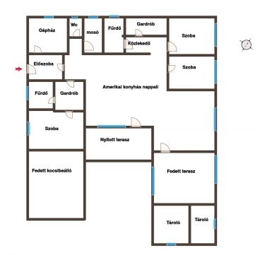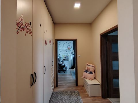 3 szoba, amerikai koknyhás ,tágas nappali,2 fűrdőszoba(egyikben wc-zuhanyzó,másikban wc-kád),különálló wc,2 gardrób,előszoba,kazánház,mosószoba található benne.