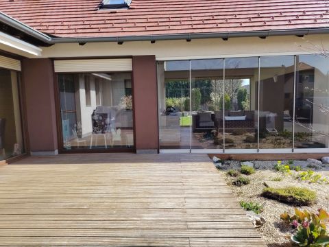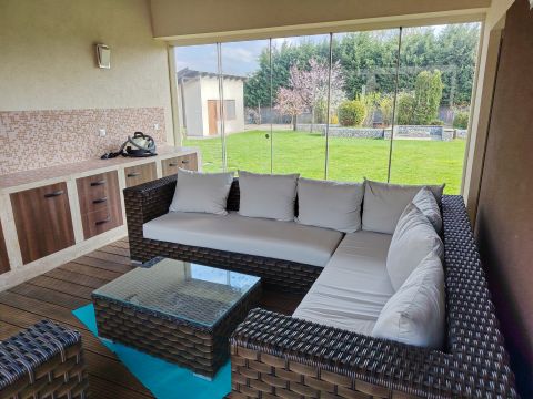 Fedett garázs az épület bejáratához közel,illetve egy zárt terasz,melyben konyha,2 tároló található.