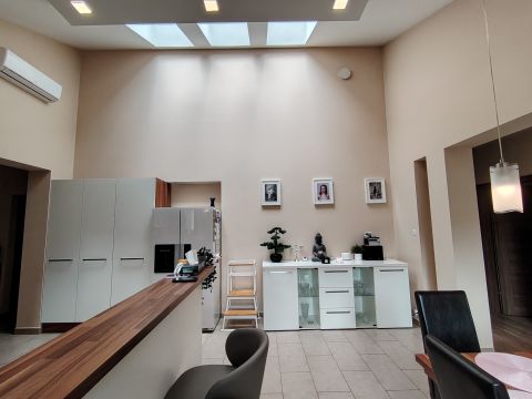 Az ingatlanban elektromos redőnyökkel ellátott,3 rétegű üveg nyílászárók vannak,a tágas tér mellett biztosított a napfényes környezet.