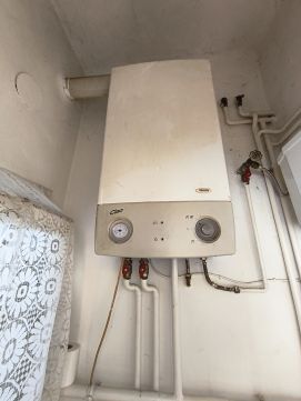 A fűtést és a melegvíz ellátást gázkazán biztosítja.
