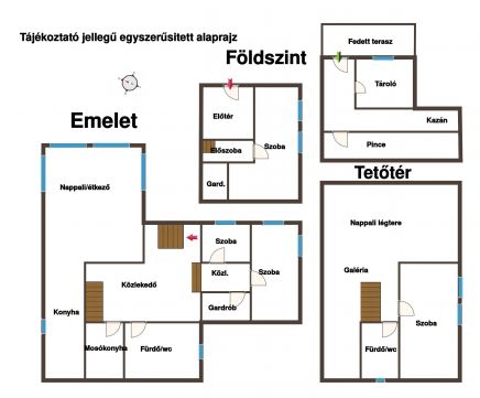 További helyiségek a praktikus mosókonyha, egy tágas gardróbszoba, spájz, szauna és külön tároló helyiség.