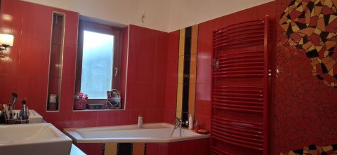 A 3 szintes otthon, mely 1985-ben épült és 2015-ben bővítették, panorámás kilátást kínál a Mecsekre és a TV-toronyra. A ház szigetelve van, új, Viesmann kondenzációs kazánnal és cserépkályhával fűtött, így az energetikai hatékonyság is kiemelkedő.