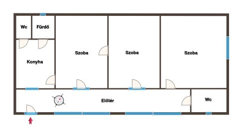 Az ingatlanban 3 tágas szoba, egy ablakos konyha, egy fürdőszoba, 2 külön wc, és egy tágas előtér helyiségek kaptak helyet. Elrendezése, szobaszáma alapján családosok számára is kellően tágas életteret kínál.