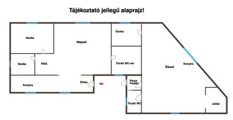 A tetőszerkezet stabil és jó állapotú, a fedéshez régebbi, de megfelelő állapotú cserepek kerültek visszahelyezésre. A lakótér összesen 106,92négyzetméter, amely jelenleg két, különálló lakrészre tagolódik. Az első, 62,02 négyzetméteres lakrészben két szoba, nappali, konyha és fürdőszoba található. A második, 45,9 négyzetméteres lakrész egy szobával, nappaliétkezővel, konyhával, valamint fürdőszobával és WC-vel rendelkezik. A második lakrész alatt részlegesen pince is kialakításra került, amely praktikus tárolási lehetőséget biztosít.