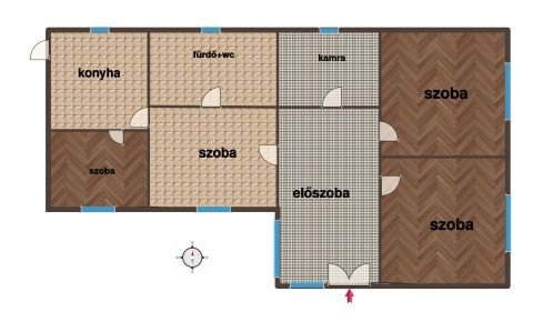 A remek adottságokkal rendelkező ingatlan a 60-as években épült tégla falazattal. A lakótér nettó alapterülete 91nm, 2 tágas szobával, napsütötte előtérrel, 2 kisebb szobával, konyhával és fürdőszobával. Fűtése jelenleg cserépkályhákkal megoldott.
