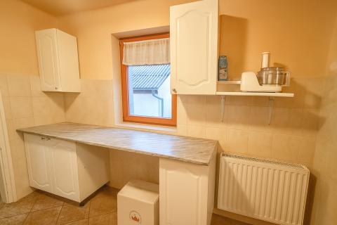A házban összesen 5 szoba, 1 hatalmas étkezős konyha, 1 kisebb konyha, spejz, 2 fürdőszoba