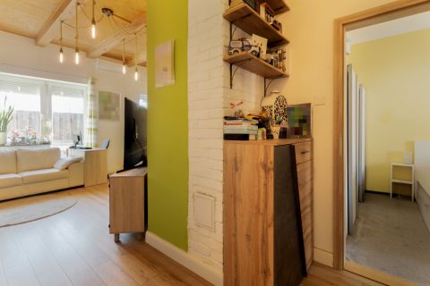 Az ingatlan 3 szobás, tetőtér-beépítéssel, praktikus elrendezésű, otthonos hangulatú. A fedett terasz ideális helyszíne lehet reggeli kávézásoknak vagy esti pihenésnek.