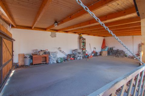A gondozott kertben automata öntözőrendszer segíti a kényelmes fenntartást, az autó számára pedig fedett kocsibeálló áll rendelkezésre.