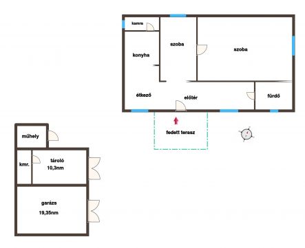 - nagy méretű garázs tolóajtóval :19,35nm