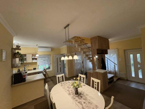 A 2020-ban indult felújítás során a víz- és villanyhálózat teljesen megújult, új lépcsőt építettek, 2024-ben ipari áram (3x16A) került bevezetésre, valamint a teljes csatornarendszert is korszerűsítették. A felső szintet 2025-ben újrafestették, és két éve egy 650-es teljesítményű klímát is beszereltek. A fűtésről korszerű kombikondenzációs kazán gondoskodik, amely két éve került beépítésre, a melegvíz-ellátást pedig egy 200 literes villanybojler biztosítja. Az ingatlan 2024-ben új külső kéményt is kapott, a terasz pedig UV-védett tetővel lett ellátva.