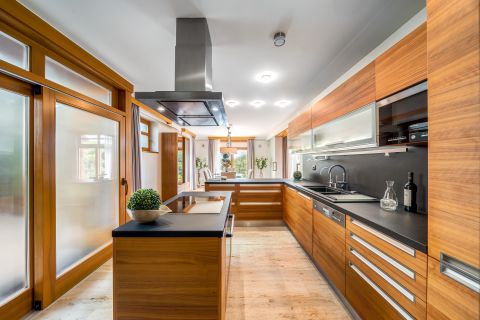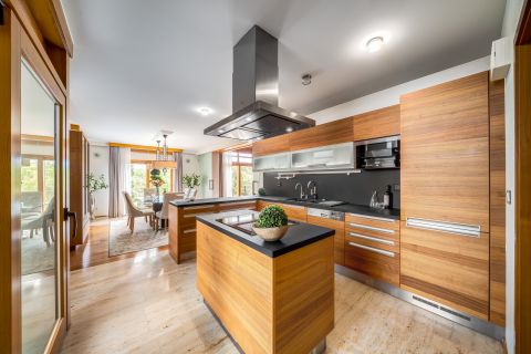 A hatalmas üvegfelületeknek köszönhetően a tér fényárban úszik, és közvetlen kapcsolatban áll a tágas terasszal, amely tökéletes helyszínt biztosít a reggeli kávé vagy a naplementék élvezetéhez. Az étkező és a konyha igény szerint egybenyitható vagy elválasztható, így a közösségi és privát terek rugalmasan alakíthatók.