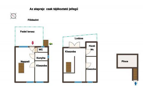 Az ingatlanban van 3 félszoba, 1 kis konyha, 1 nappali, 2 wc, és egy fürdőszoba.