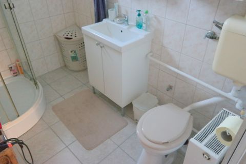 található, míg lent van a konyha, előszoba, második fürdő+WC. Fent három