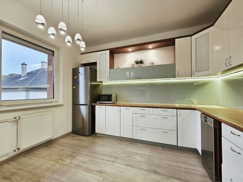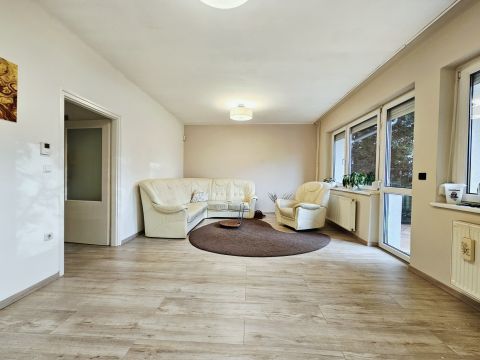 Eladó egy tágas, 135 m²-es, háromszintes sorházi lakás Zugló csendes, zöldövezeti részén, az Erzsébet királyné útja és a Rákos-patak közelében.