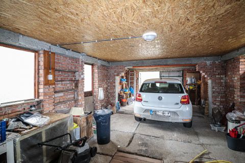 A kert 441 négyzetméter területű, az ikerszomszéddal közös fúrt kúttal. Itt kapott helyet egy téglaépítésű, két autó kényelmes tárolására alkalmas garázs.