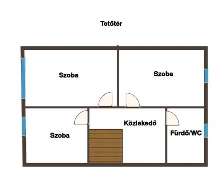 Helyiségek: A földszinten amerikai konyhás nappali (két teraszkapcsolattal!), egy hálószoba, fürdő és külön WC található. Az emeleten 3 további világos szoba és egy sarokkádas fürdőszoba kapott helyet.