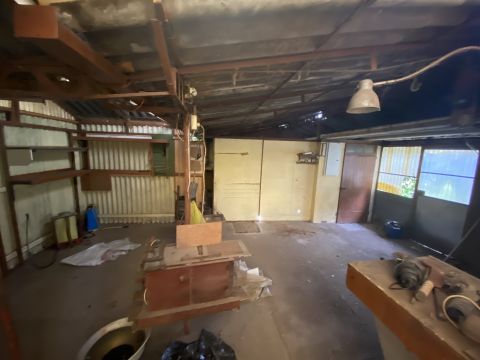 Továbbá a telken megtalálható tároló helyiségek, műhely és egy autó tárolására alkalmas zárható fedett garázs.