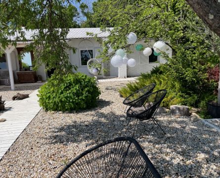 A HÁZ ÉS A KERT STÍLUSJEGYEI REMEKÜL HARMONIZÁLNAK.