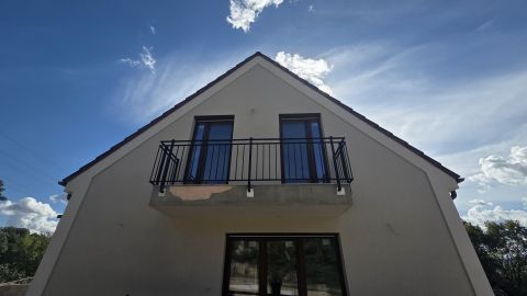 Az ikerházak jelenleg közel 85%-os készültségben vannak, egyenként 86 nm nettó hasznos összterülettel (bruttó 97 nm), plusz hozzá tartozik a garázs, nyitott terasz és a tetőtéri erkély.