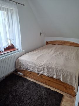 Az épület kétszintes, a földszinten előtér, konyha ebédlővel, nappali, és egy fürdőszoba-wc található, az emeleten két szoba és egy wc.