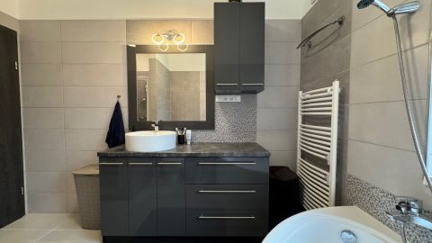 A ház gáz cirkó fűtéssel és klímával is felszerelt, továbbá 3 rétegű műanyag nyílászárókkal van ellátva.**